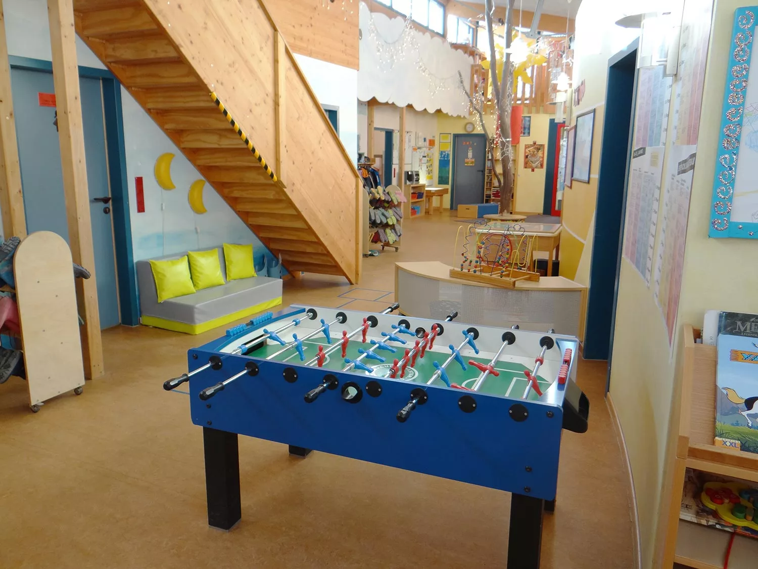 Mit Garderoben der Kinder, Kaffee- und Teeecke für Eltern und Gäste, großzügig und freundlich gestaltet, mit viel Platz zum Spielen.