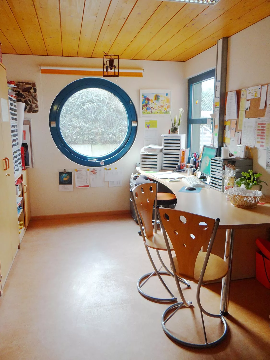 Mit Werkbank und einem Brennofen, für Werk- und Tonarbeiten, andere kreative Tätigkeiten mit unterschiedlichen Materialien, für Experimente und Kleingruppenarbeit.